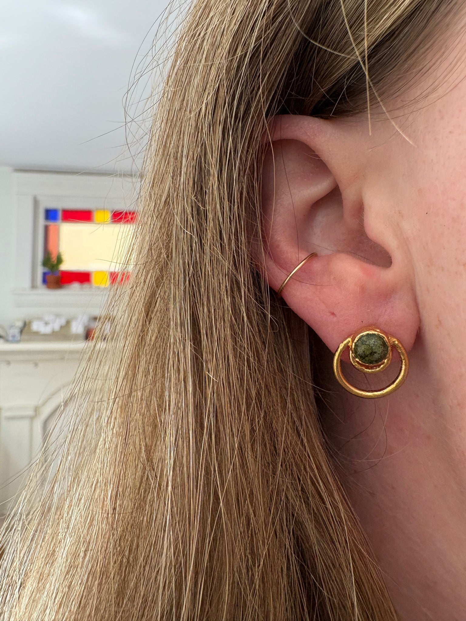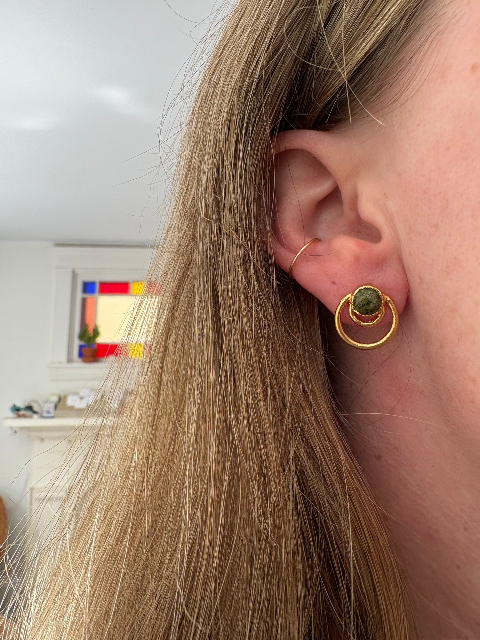 The double circles are made from recycled thin copper wire and henna jasper, which were electroplated in copper for a period of between to 12-24 hours.