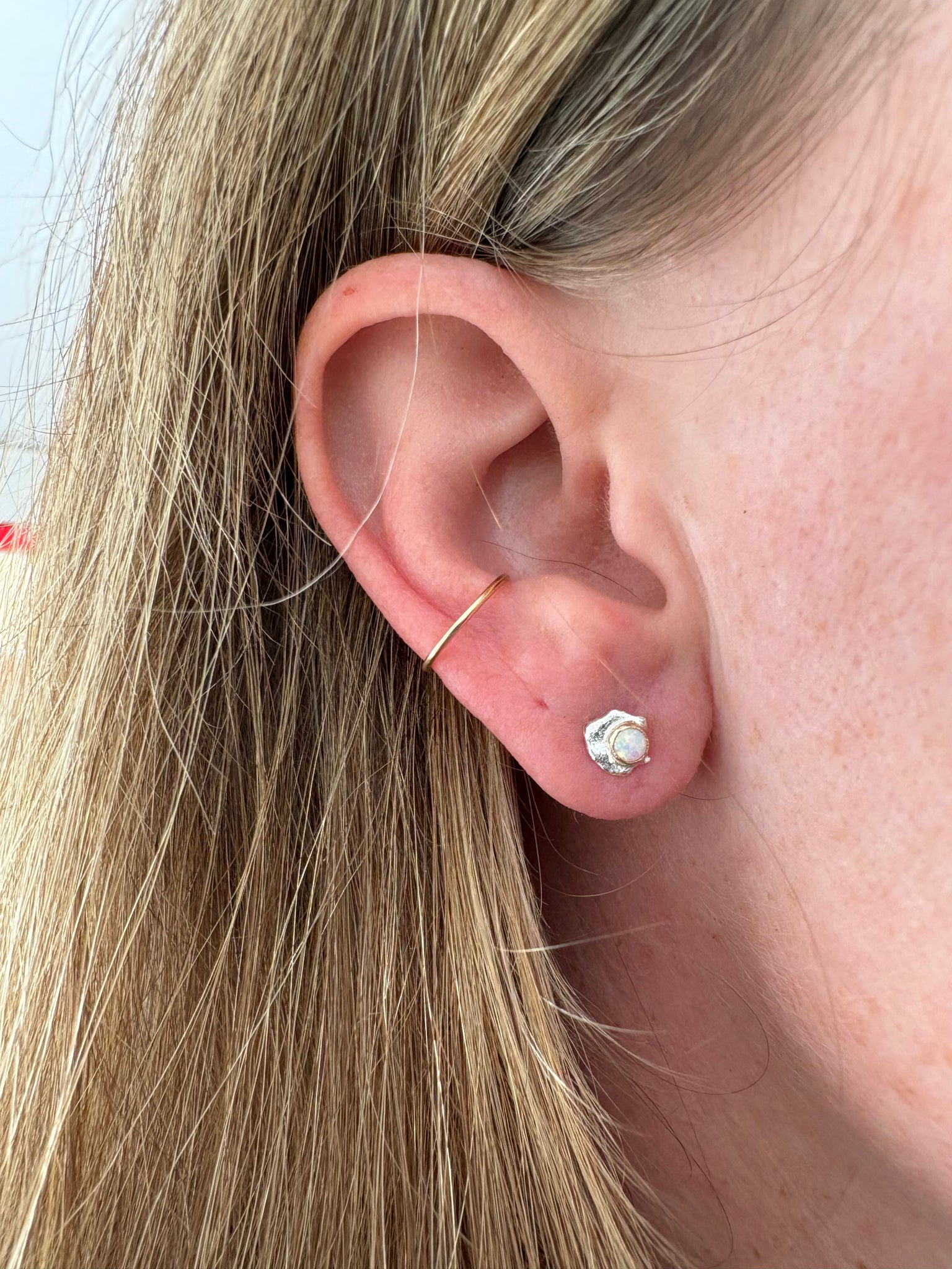 Each shape is completely unique and impossible to replicate. I've added a 14k gold filled bezel to the silver, and a teeny tiny opal for some sparkle.